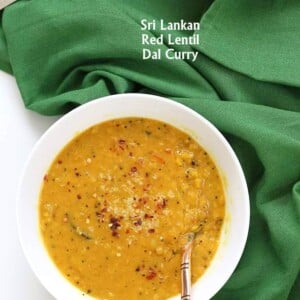 Sri Lankan Red Lentil Curry. Creamy Dal curry Spiced with fenugreek seeds, cinnamon & black peppercorns. Coconut milk adds cooling creaminess. Easy Vegan Gluten-free Soy-free Recipe. No garlic recipe. Jump to Recipe