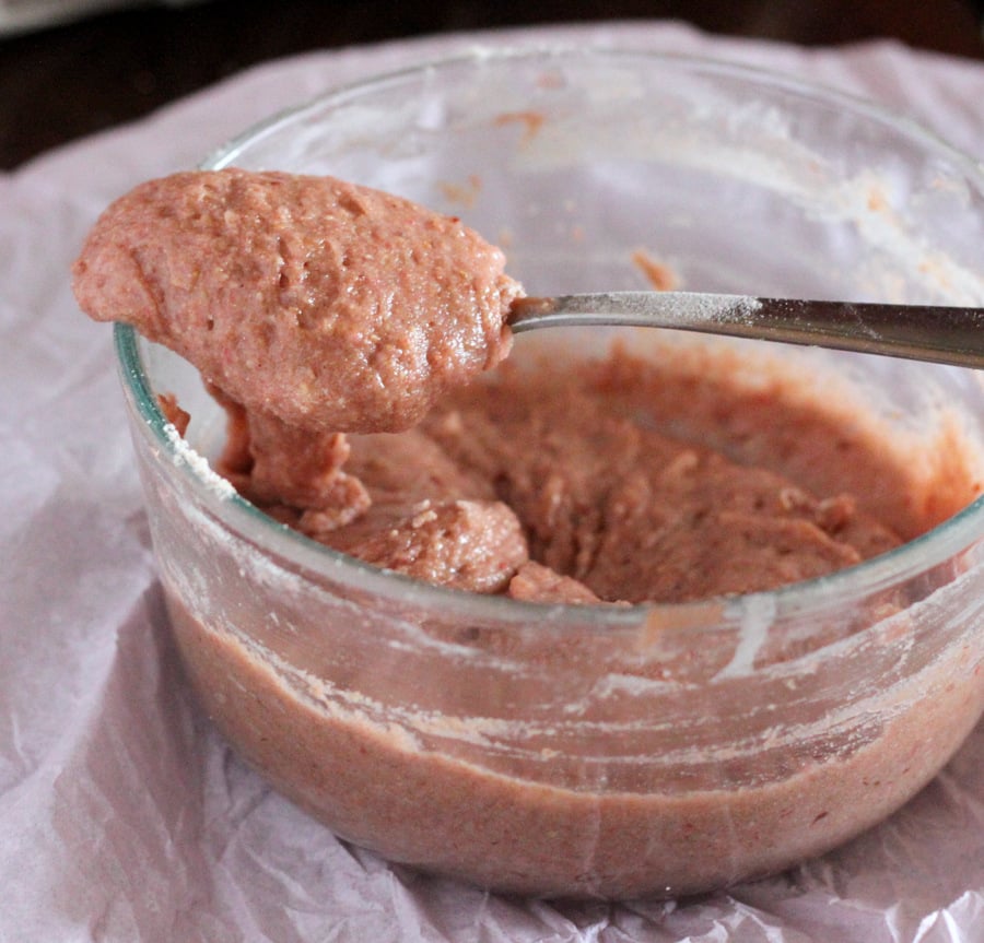 Mix all the wet ingredients in a bowl. (You can add a little raw beet and puree with the strawberries for a deeper color)