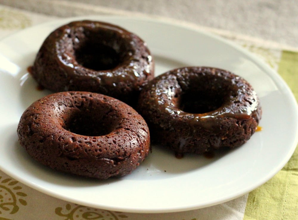These below are Chocolate doughnuts topped with salted caramel sauce. I have been eating waaay too much chocolate, so I just make a small batch when baking bread.