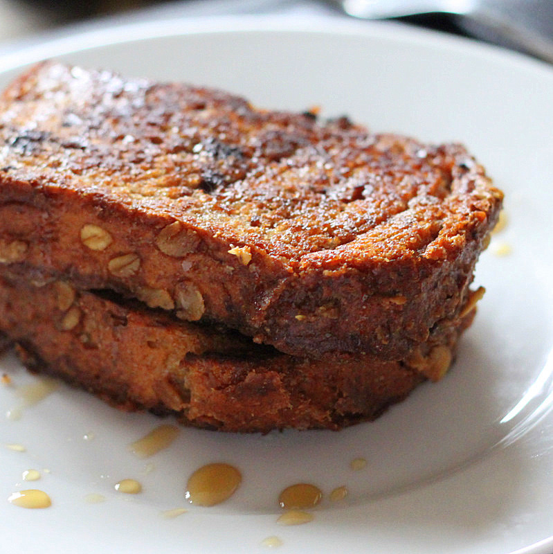- Mix Oats, flax seed, sugar, spices and warm water. Mix well and let sit for 5 minutes. Mix again, dip slices and pan fry them on medium-low, in a Tablespoon or so organic canola or coconut oil. 3-4 minutes each side.