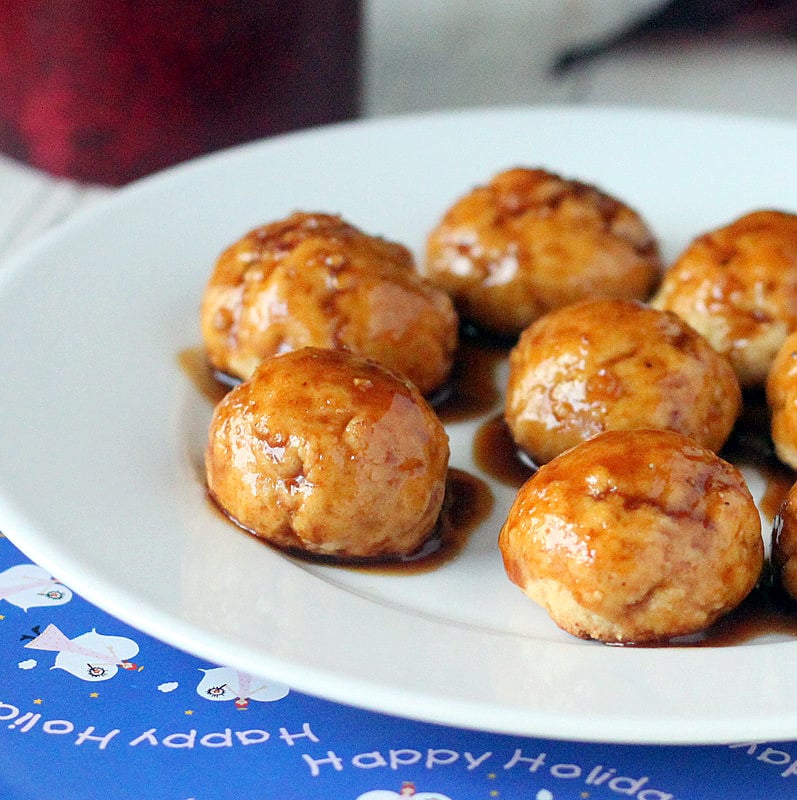 Mix 3 Tablespoons sugar in 1 teaspoon water/non dairy milk and heat at medium heat till it starts to melt(3-4 minutes). Add in 1/2 teaspoon of coconut oil, 1/2 teaspoon chai spice, 1 Tablespoons coconut milk and keep mixing continuously, until you get a flowy sticky sauce. Add more coconut milk if needed. (I kept the sauce thin, since I dont like a very thick sugar coating on the small balls.)