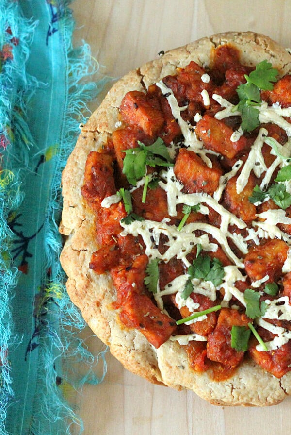 Deconstructed Gobi Paratha (Cauliflower Potato Crust) Pizza with Cucumber and Yogurt Raita. vegan glutenfree grainfree recipe