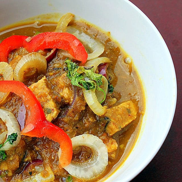 - Serve hot topped with the fried onion rings, chili, pepper mixture. Add a tsp of vegan butter for richer curry. Serve with any Indian Flat bread or basmati rice.