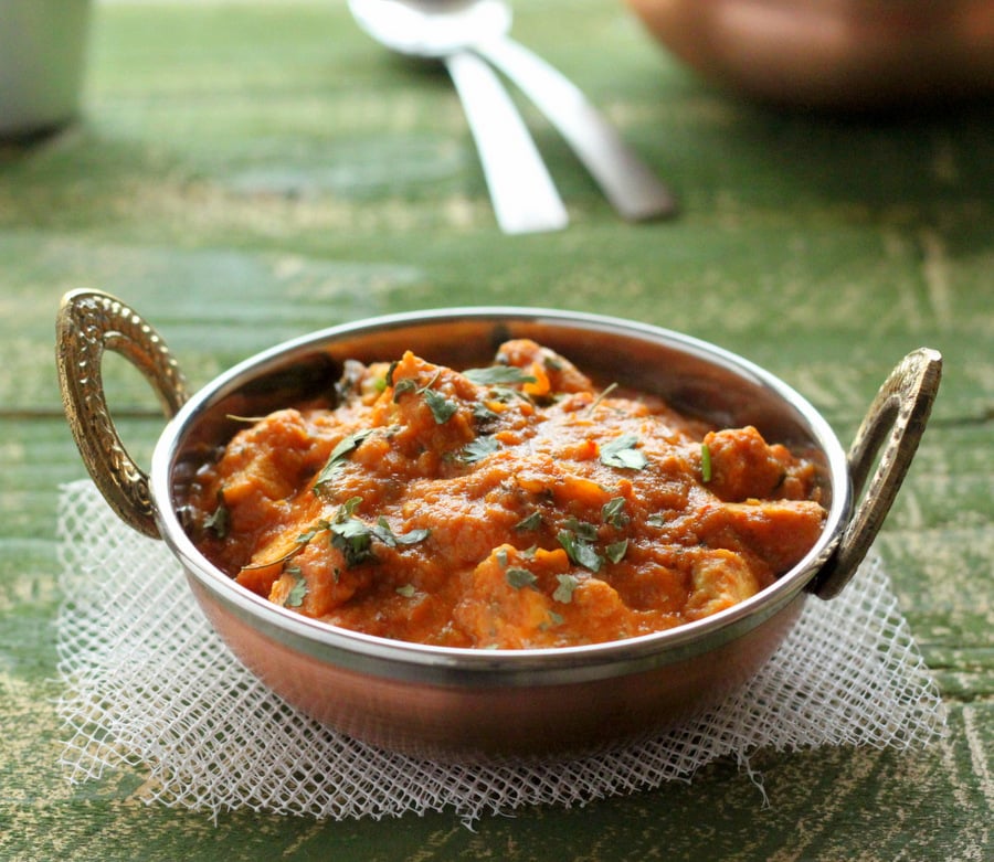 This creamy masala curry, is a perfect addition to a cozy dinner, served hot with Indian Naan Bread or Basmati Rice. Depending on your spice preference, reduce the heat (cayenne, hot green chile) and serve it with Naan bread or Rice or over cooked Quinoa. Tikka Masala, butter masala , Makhani are curries often used interchangeably in restaurants. These are not totally authentic to Indian cuisine. The origins of the tikka masala stem from butter masala/makhani versions from Punjab, North India and Pakistan. Meat Tikka masalas or Paneer(cottage Cheese) Tikka masala are a staple in most restaurants now.
