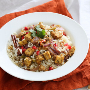 This crisp and fluffy Tempeh Tikka Pulao. Happy Diwali!