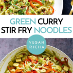 These green curry noodles would also be great topped with peanuts, or with slivers of red hot chili peppers if you like things extra spicy!