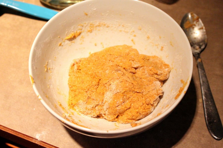 - 1/2 cup wheat flour, or 1/4 cup flour and 1/4 up bread crumbs