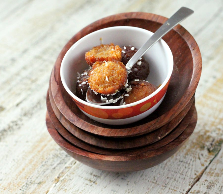 Most Indian Desserts can easily fit into a non-Indian spread. These GJs are somewhat like Sweet Potato doughnut holes. the difference being that these balls are soaked through with flavored sugar syrup instead of thick icing. Use your favorite flavors in the syrup(cinnamon, pumpkin pie spice, gingerbread spice) and these can be your sticky soft doughnut hole dessert.