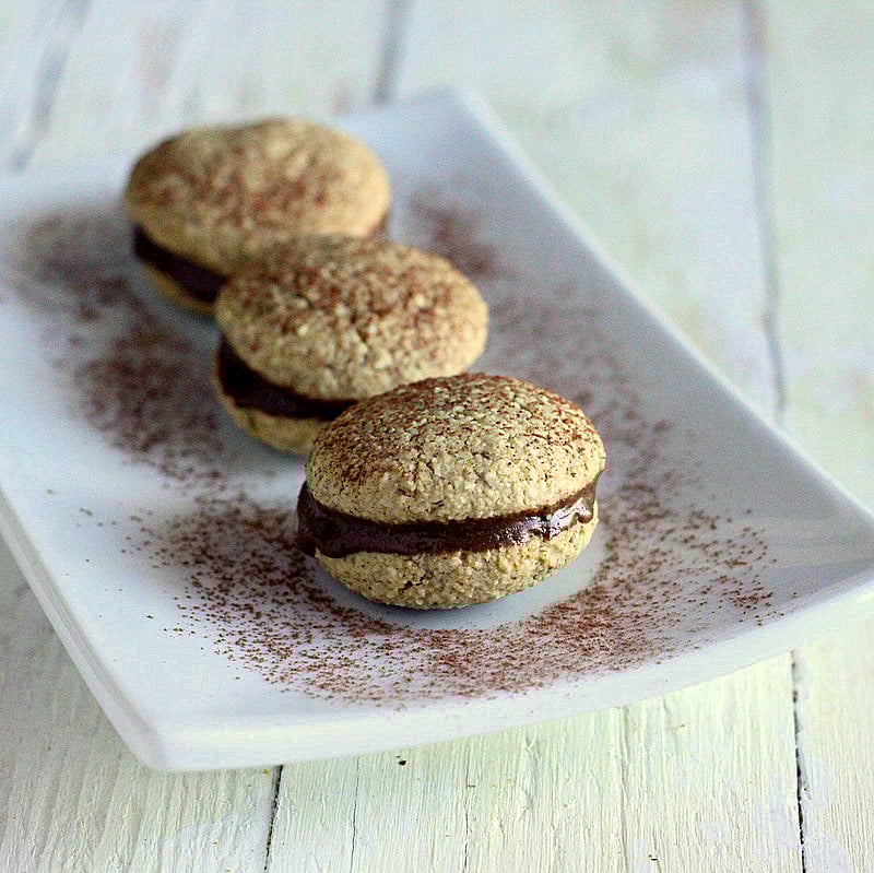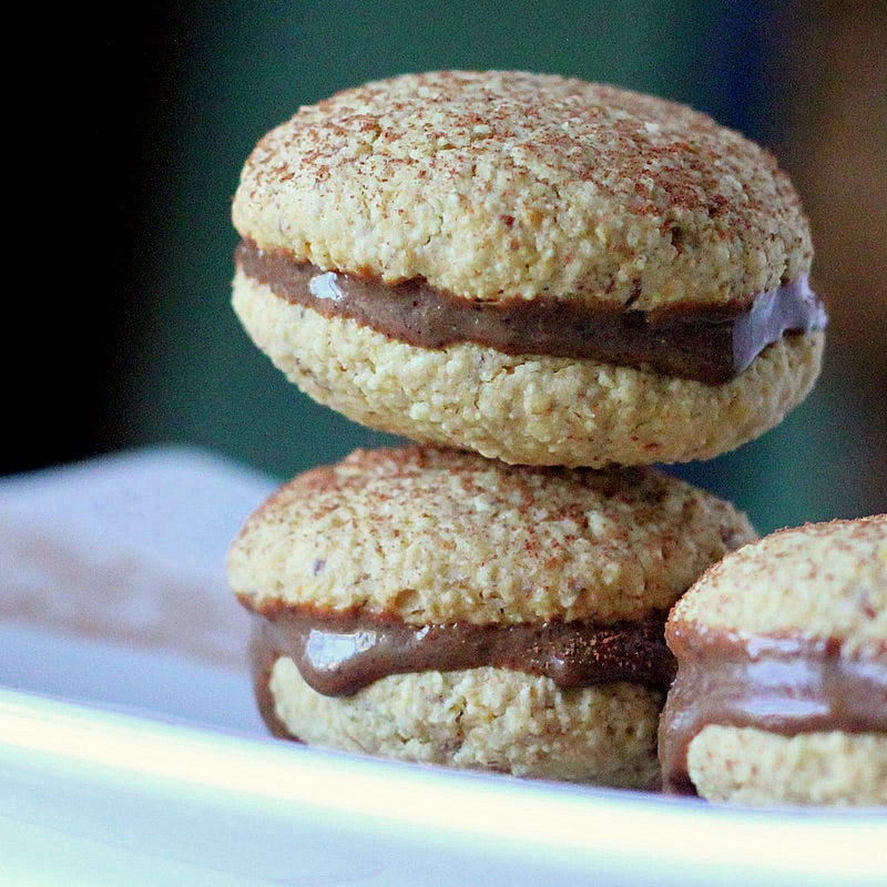 You cant blame me for Tiramisu-ing any possible thing in sight. After the delicious pancakes, its time to tiramisu a cookie! These are Somewhat Tiramisu whoopie pies, crunchy with a coffee caramel center. The crunchy Cashew Oat cookies are almost a macaron, filled with a creamy coffee caramel. I used rum in this version, but there is only so much rum I can add without changing the texture. There is a hint of the liquor in the cookie, which is fine by me.. But to get a more Tiramisu-y taste, use extract instead of the liquor. Rum, coffee or amaretto extract will work really well.