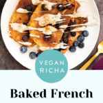 Vegan Baked French Toast is a simple sweet breakfast bake you need to add to the weekend morning rotation! Gluten-free option added. No standing around the stove flipping each toast! Soyfree recipe.