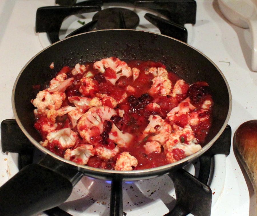 - Add the cauliflower, toss and cover and cook till 2 minutes.