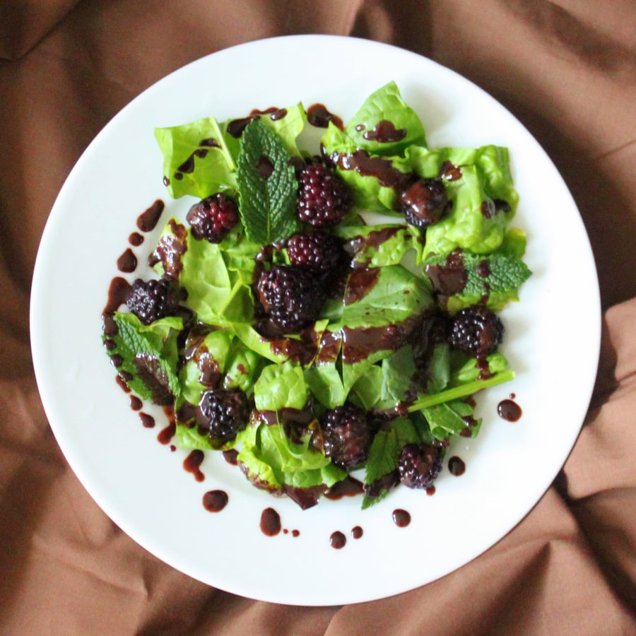 - Meanwhile, prep the salad. Chop up greens(I used Spinach), add Blackberries and mint.