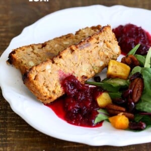 This holiday season, try my glutenfree holiday roast! It's made with chickpeas and tofu, comes filled with roasted vegetables and features a sweet and sticky glaze. Gluten-free, nut-fre