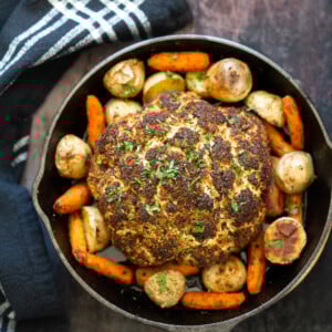 This Asian-inspired Miso Gochujang Peanut Butter Glazed Whole Roasted Cauliflower is a veggie-forward show-stopper perfect for the holidays, whether you’re having it as a vegan main course of a vegetarian meal or serving it as a side dish or appetizer. Gluten-free and refined sugar-free.
