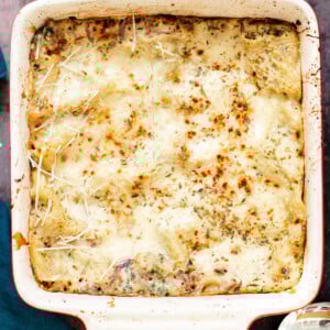 Vegan Spinach Alfredo Skillet lasagna makes the perfect weeknight dinner ! An easy vegan pasta recipe that is family-friendly, uses just 1 skillet, and is ready to eat in about 45 minutes!