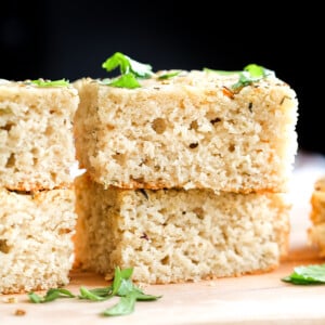 Skip the dinner rolls and. this easy Glutenfree Focaccia made with oat flour, almond flour, and potato starch. Topped with herbs, garlic and olive oil is makes for the perfect side for soups and salads. Gum-free & vegan.