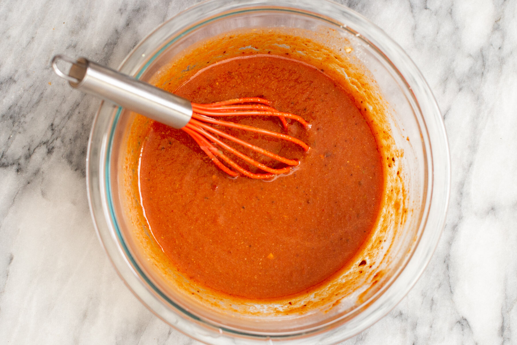 - Make the enchilada sauce: mix all the ingredients under enchilada sauce in a bowl, until well combined. Then set aside.