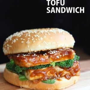 If I could just grab this General Tso’s Tofu Sandwich off the screen I would! This simple sandwich has a quick general tso’s sauce poured all over some pressed tofu and baked, served over blanched broccoli and greens in a sandwich. You can make it into a wrap or serve it up bowl style with some cooked grains, greens and sprouts.