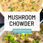 The best recipe for Vegan Mushroom Chowder – forget the canned stuff! This vegan mushroom soup is dairy-free thanks to cashew cream and so easy to make! 1 Pot Glutenfree, Nutfree option
