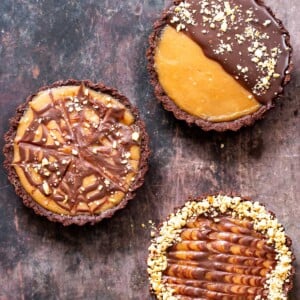 These cute little vegan peanut butter chocolate tarts look super impressive but are also surprisingly easy to make. If you love chocolate and peanut butter, you will love these vegan mini desserts.