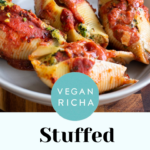 Vegan Stuffed Shells filled with a homemade herbed high protein spinach tofu ricotta stuffing make for a crowd-pleasing comfort food dinner that is also totally kid-approved. Soy-free and nut-free options included!
