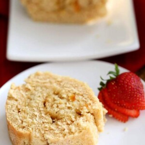 If you are like me, you would most likely not want to go through the headache of trying to roll up the cake without it cracking. With care that can be done, but you know, with care and it still might crack when you slice! So as well just slice and layer like a layered yule log. Slice into equal rectangles and layer with your favorite preserve or frosting. Or just make the yellow cake into a cake pan or loaf! The cake smells amazing while baking and tastes great too. Add your favorite frosting and done.