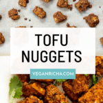 Stop what you’re doing and go marinate some tofu NOW because you don’t want to miss out on these Crispy Baked Vegan Tofu Nuggets! They are my new favorite vegan party snack – well, along with my Baked General Tso Cauliflower!