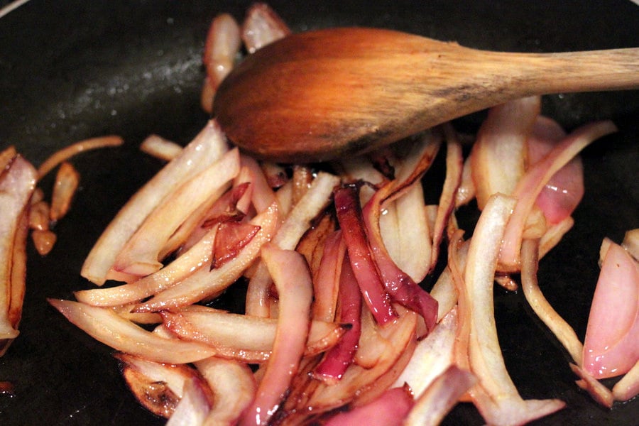 (Or you can cook the onions and peppers in a wok on high heat till lightly burnt for the smoky flavor)