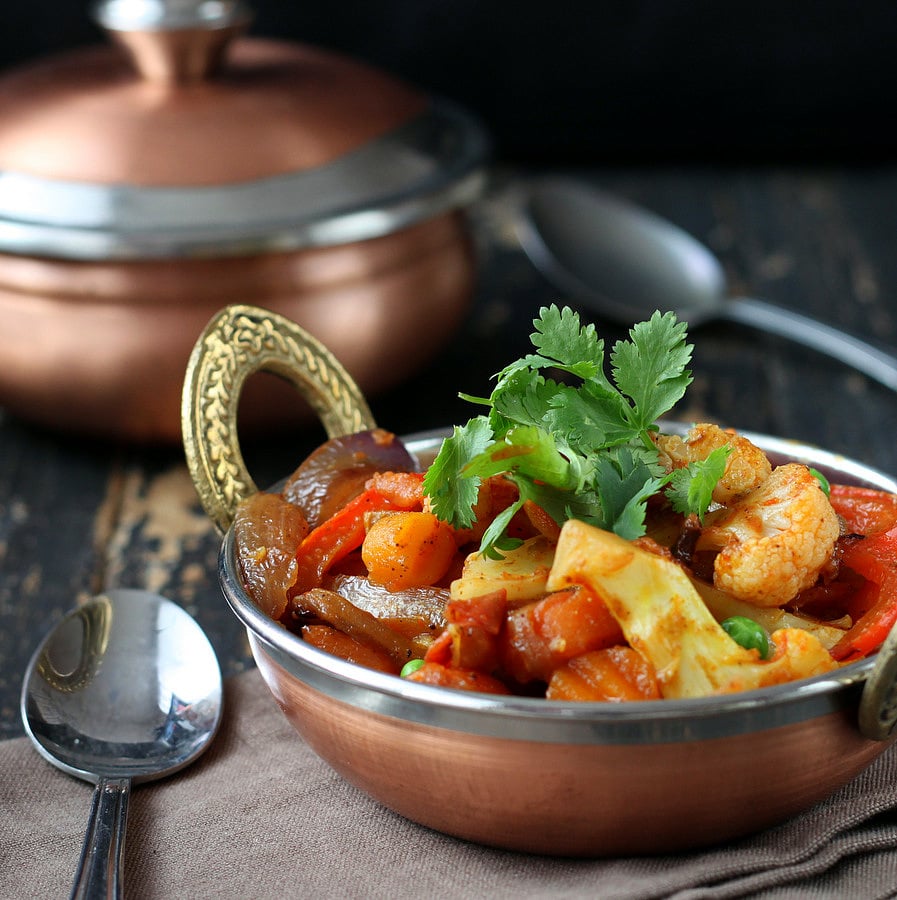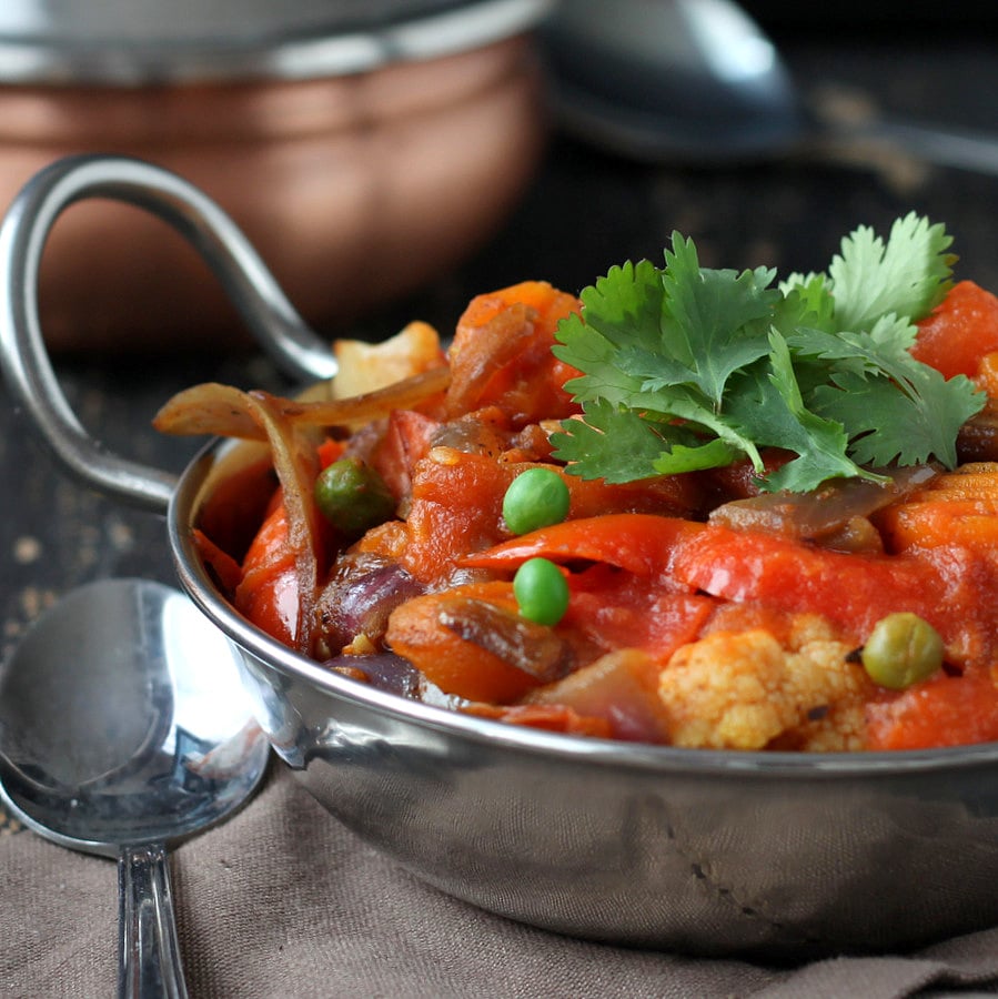 Vegetable Jalfrezi โ Veggies in tangy smoky curry.