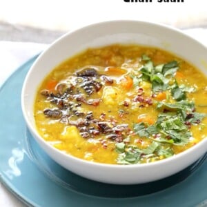 Lentil Veggie Dhansak Recipe. Dal and vegetables cooked with spices. Parsi dhansak Recipe. Make this dal dhansak in Instant Pot Pressure Cooker or in a Saucepan. Serve over rice or flatbread or garlic bread. Vegan Gluten-free Soyfree Nut-free Indian Recipe.