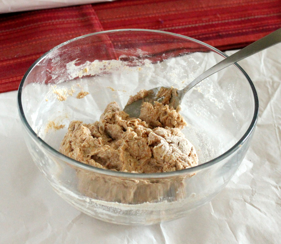 Add 1/4 cup+ 2 Tablespoons cool water and knead for 2-3 minutes. You might need a few Tablespoons more bread flour(depends on the wheat and other factors)