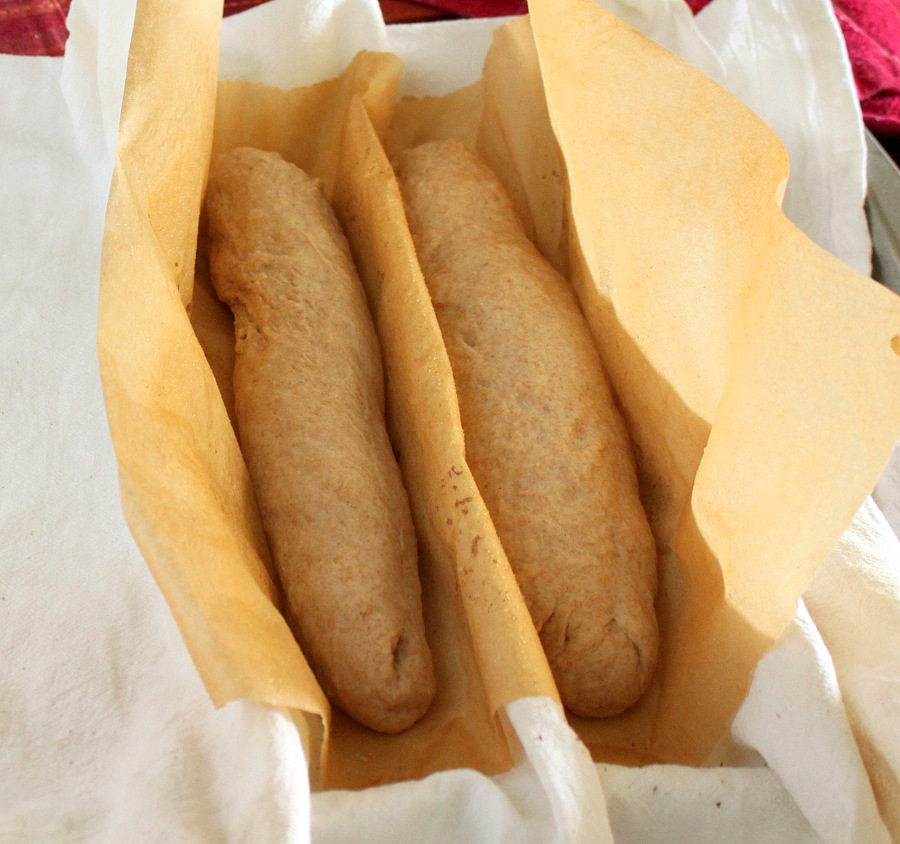 Liberally dust the logs and place on parchment to rise. Cover lightly with a towel and let rise for 40 minutes.