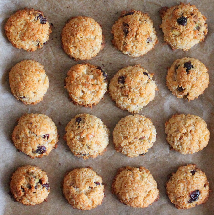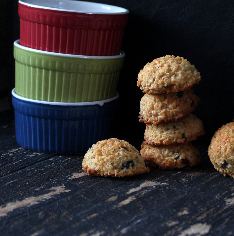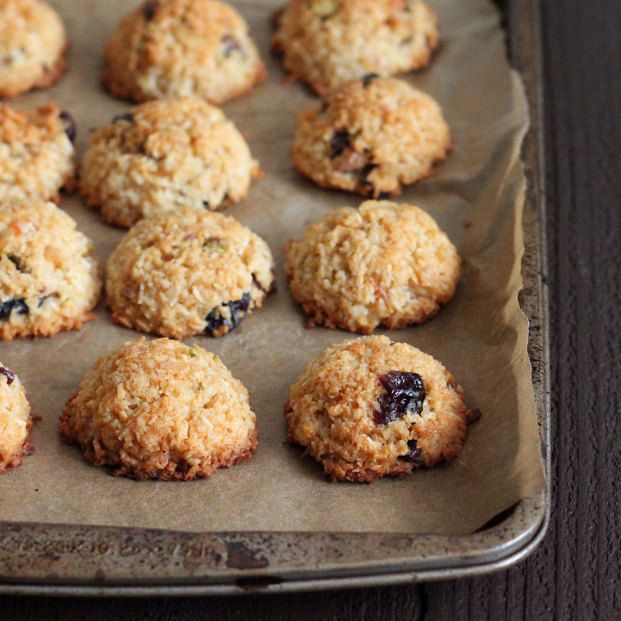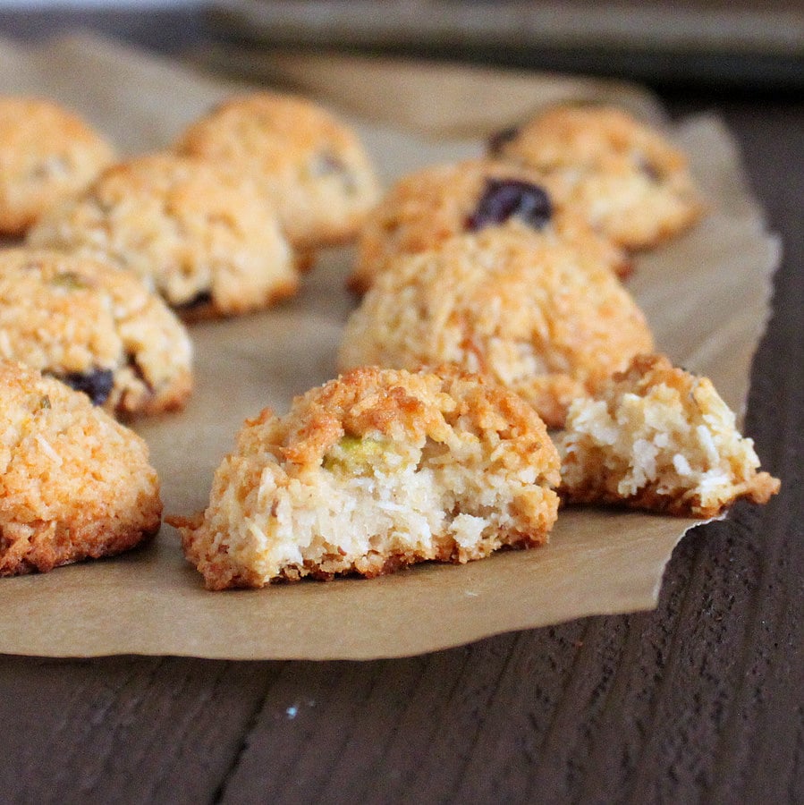 Zesty Coconut Macaroons with Cranberries and Pistachios for Kristy's Cookie Party. Glutenfree Vegan Recipe